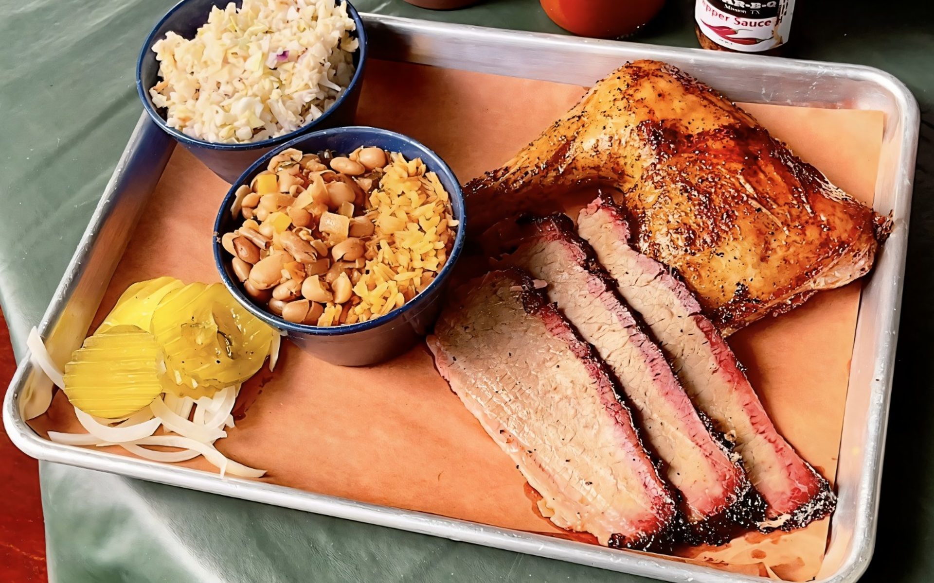 Love the chicken leg quarter plate and brisket sandwiches. The rice bean mix is amazing as well 10/10 ❤️ Also on point service from Dulce, I’d recommend asking for her!